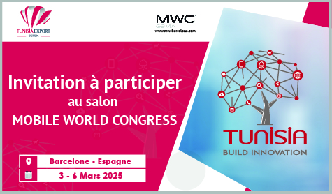 Le CEPEX organise la participation des entreprises tunisiennes au salon Mobile World Congress qui se tiendra à Barcelone-Espagne du 03 au 06 Mars 2025.